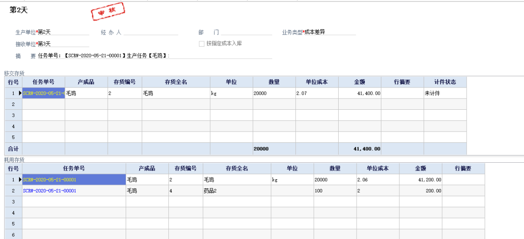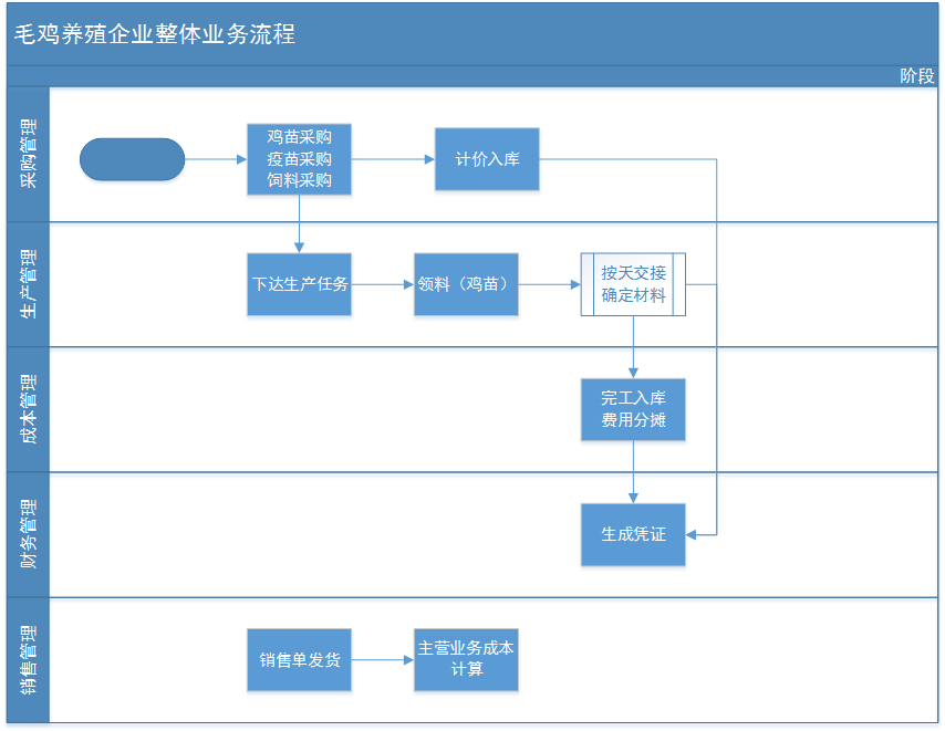 毛雞養殖企業希望通過生產過程記錄每天的一個飼料費用發生情況,并將這些費用分攤到成本里邊去,月末將人工費用同時分攤進去,同時因死亡而產生的物料消耗也同時攤入到剩下的正常毛雞中去。從而核算到每個批次雞苗到毛雞出廠的全部成本。