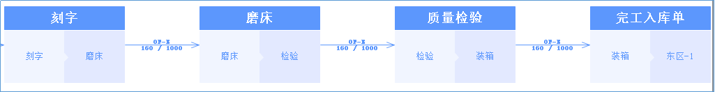 將企業的總體工藝分為軸類加工、零部件加工、工件加工、設備組裝四大部分。在管家婆工貿ERP系統中根據加工工藝方式的不同,設置不同的流轉方式。如軸類加工分為磨軸、刮膠、刨槽等。