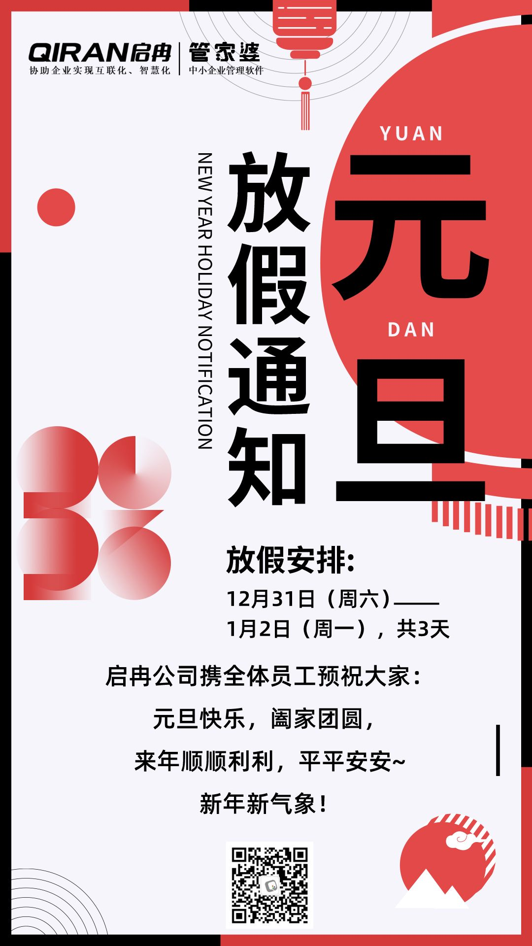 【啟冉軟件】公告 | 元旦放假通知