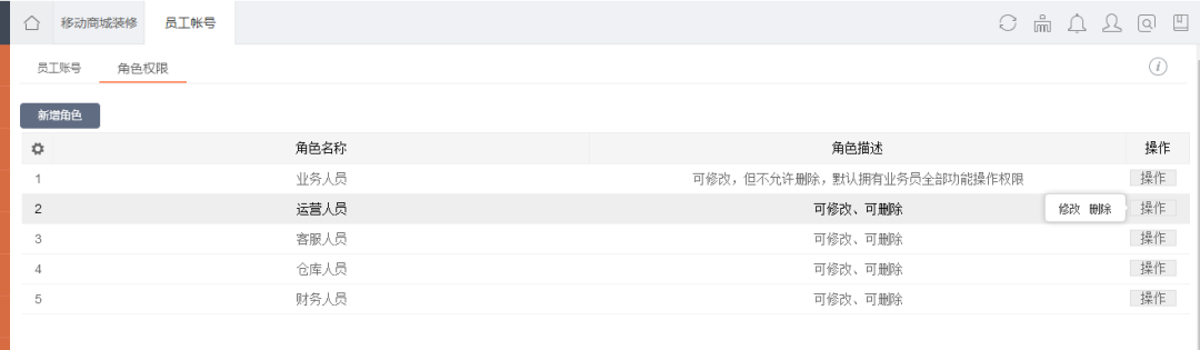 1.新增員工賬號功能操作權(quán)限和數(shù)據(jù)權(quán)限劃分