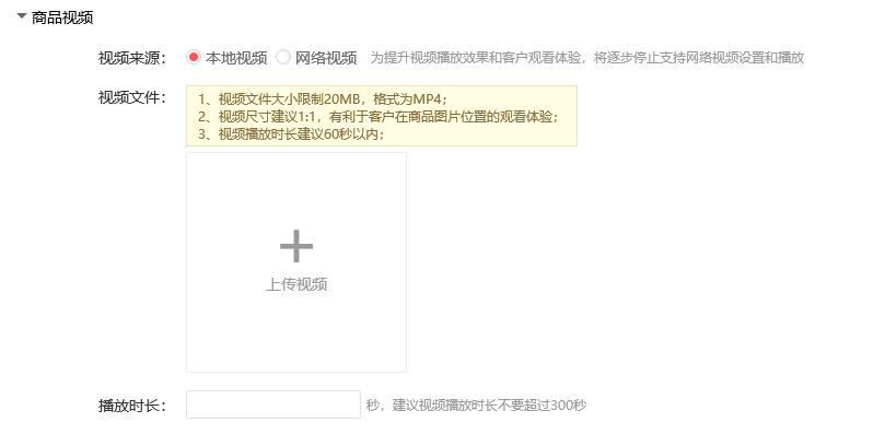此后,商品詳情可以直接上傳視pin,詳情頁播放視pin支持本地和網(wǎng)絡(luò)兩種形式