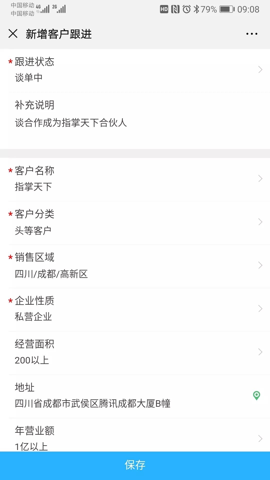 工作匯報的同時,還能快速補充客戶基本資料,例如:面積、主營商品、竟品情況等。
