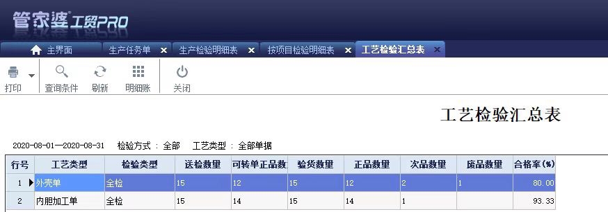 ? 工藝檢驗匯總表:查看檢驗工藝的合格率。